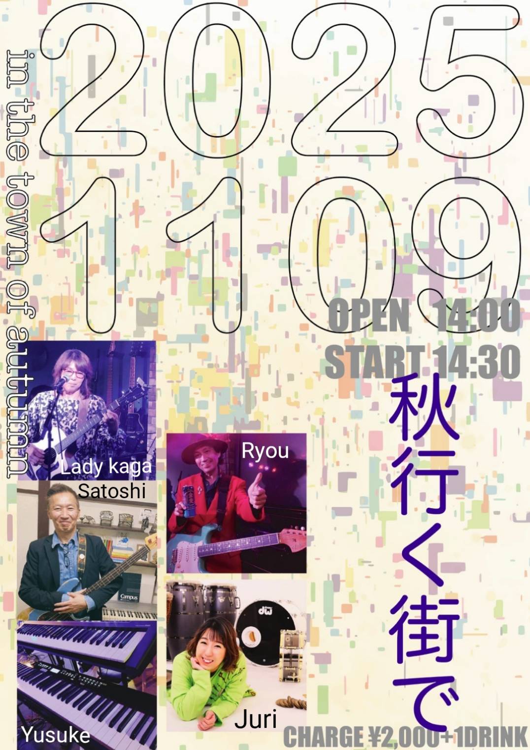 秋行く街で Vol.4 秋行く街で Vol.4 Date 2025年11月09日(日) Open 14:00 Start 14:30 Close Charge 2,000円+1ドリンク 詳細 出演 Lady Kaga(Vo.& Ag.) Ryou (Gt.) Satoshi(Ba.) Yuske(Key.) Juri(Dr.)