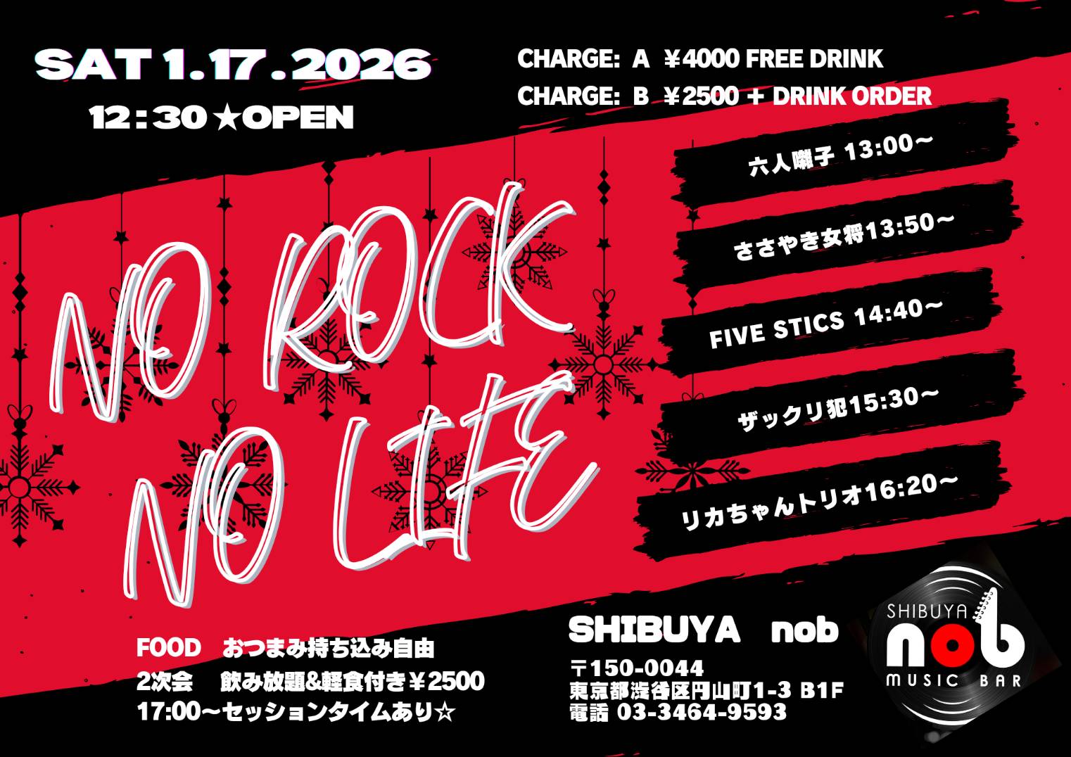 | Charge | 2,500円+1ドリンク または 4,000円(イベント中飲み放題) |
